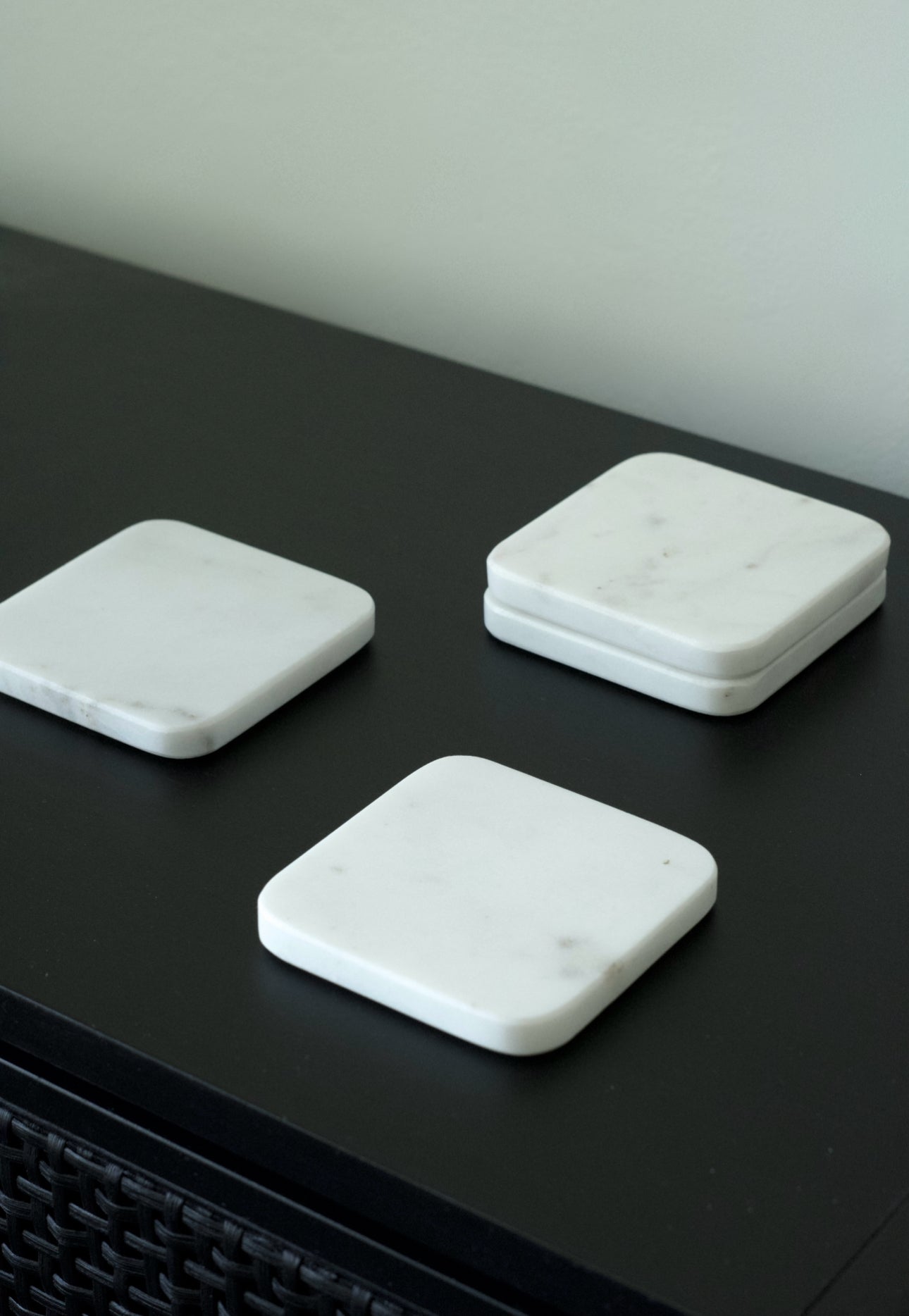 - Crafted from authentic marble, each piece features individual markings, making every coaster a singular expression of nature.